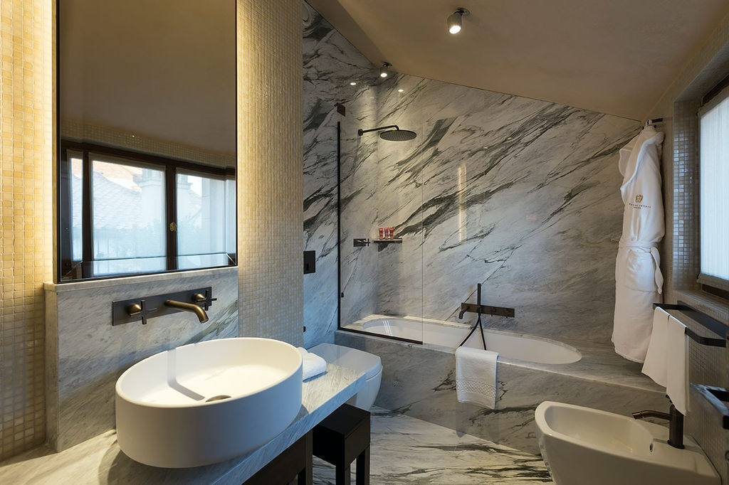 - Pietra d'Istria e Rosso Verona (corte centrale)